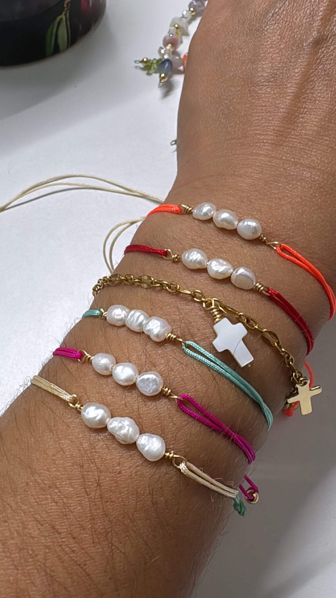 Adjustable, fresh water pearls.