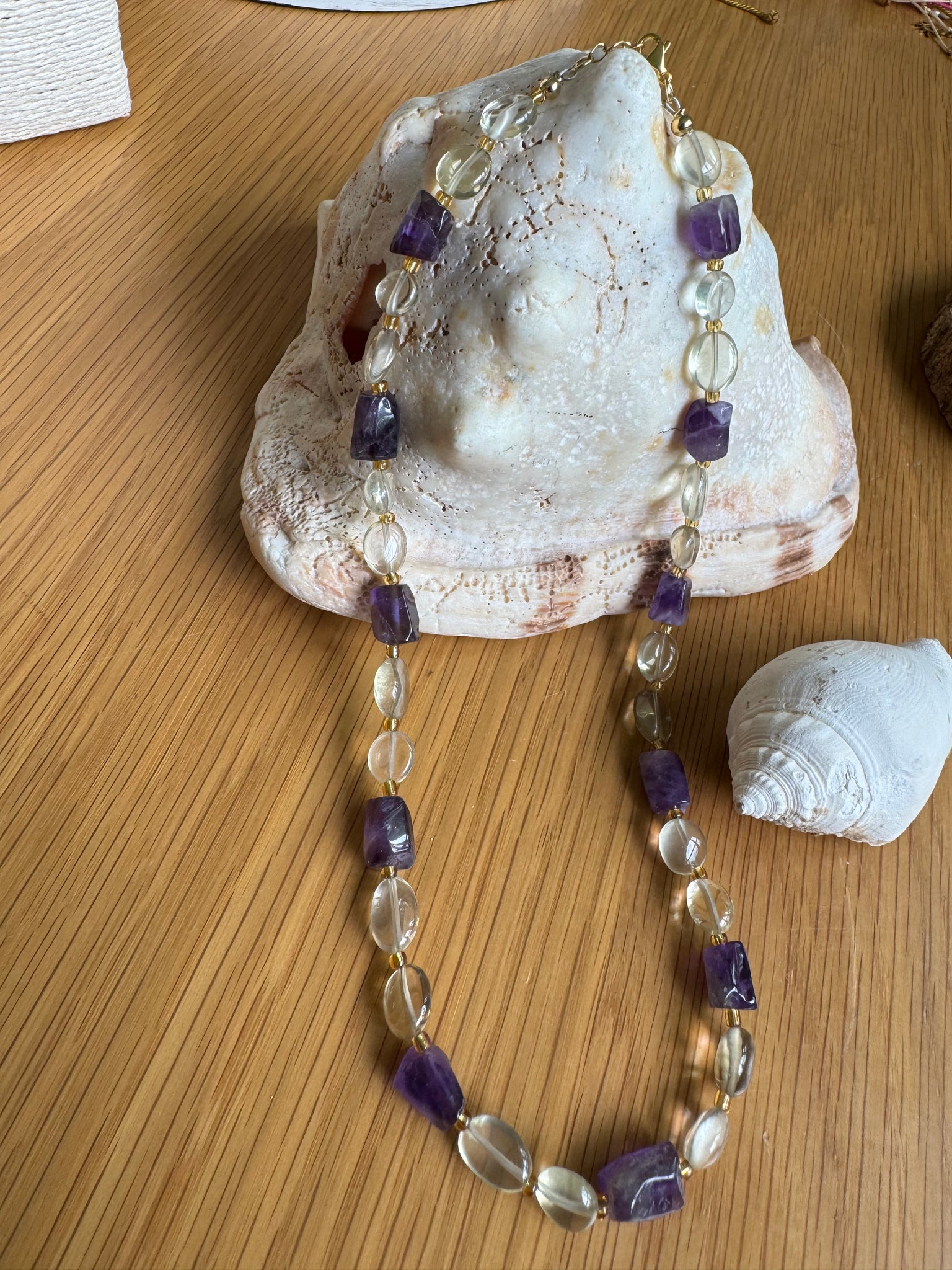 Lemon quartz and amethyst. 2” section in stainless steel.