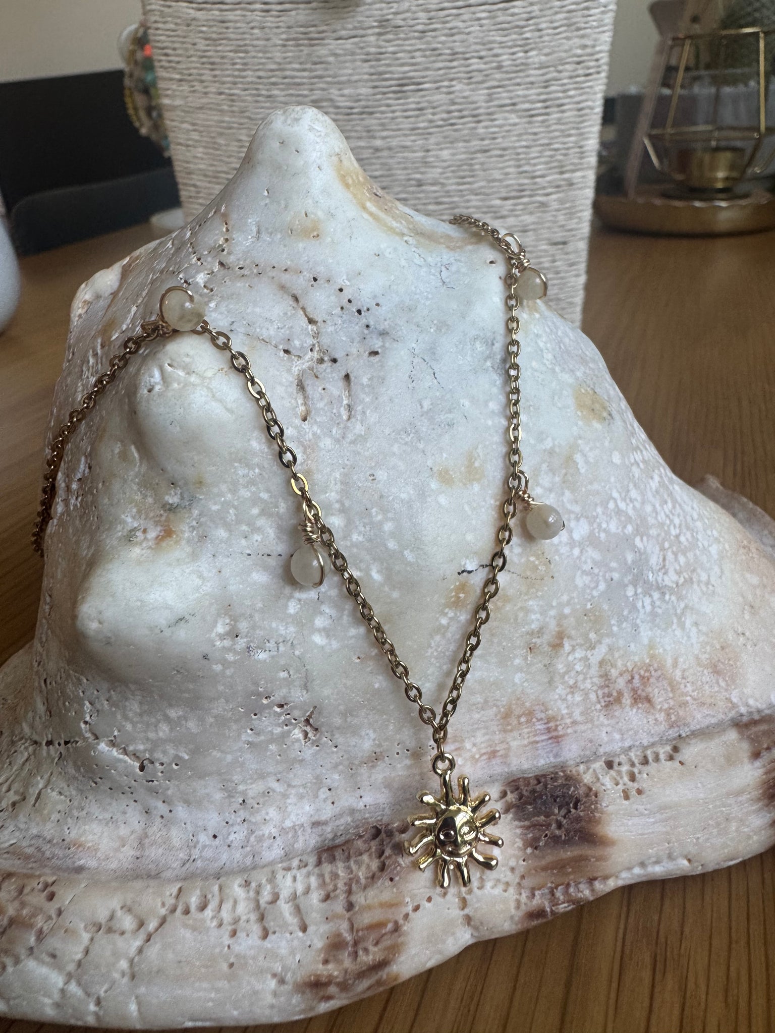 Moonstone is a gemstone believed to possess strong spiritual and metaphysical properties, particularly related to feminine energy, intuition, and emotional balance.