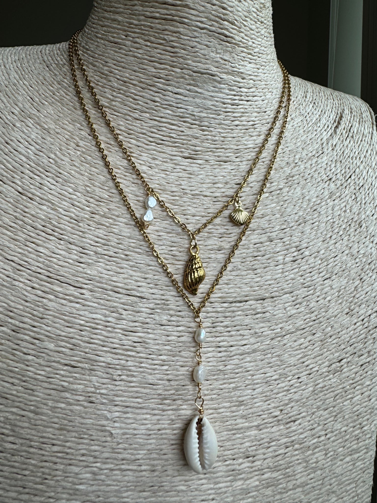 Stainless steel chain with fresh water pearls 2” section.