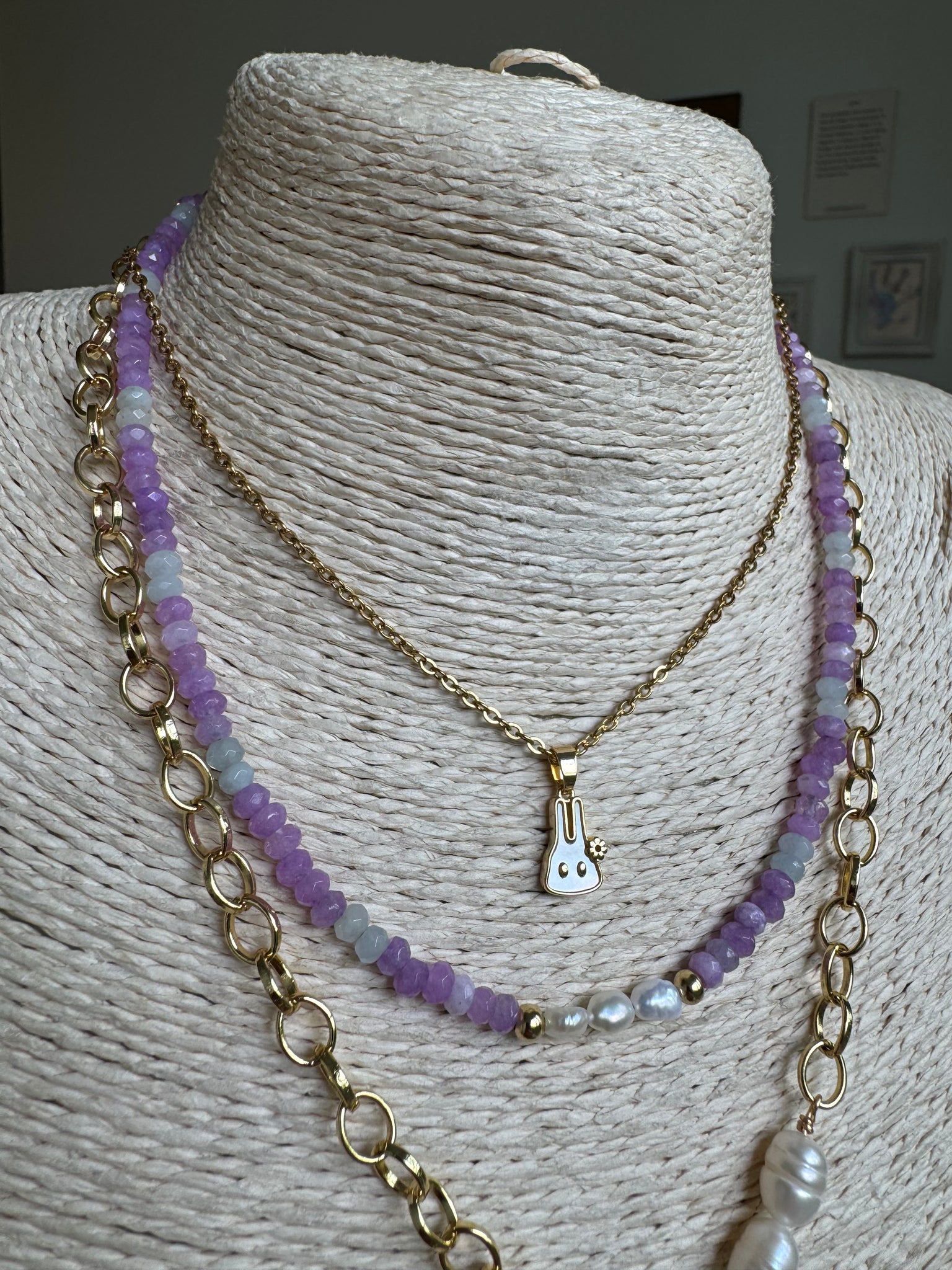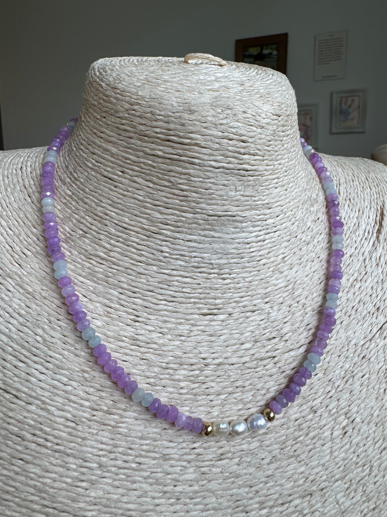 Malaysia jade stones with fresh water pearls and stainless steel findings. 2” section.